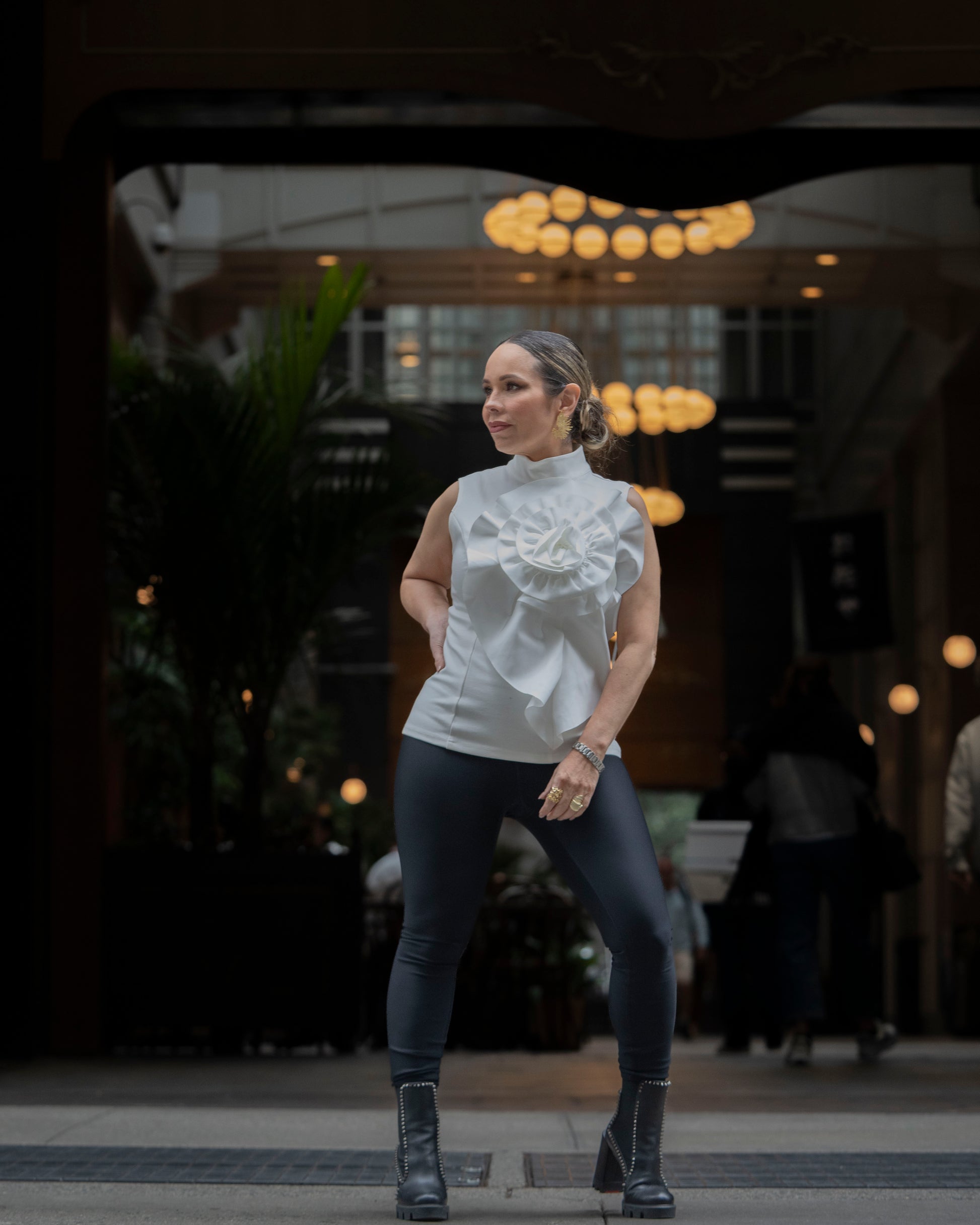 Soft Wool Blouse With Bow Tie & Pearl Buttons