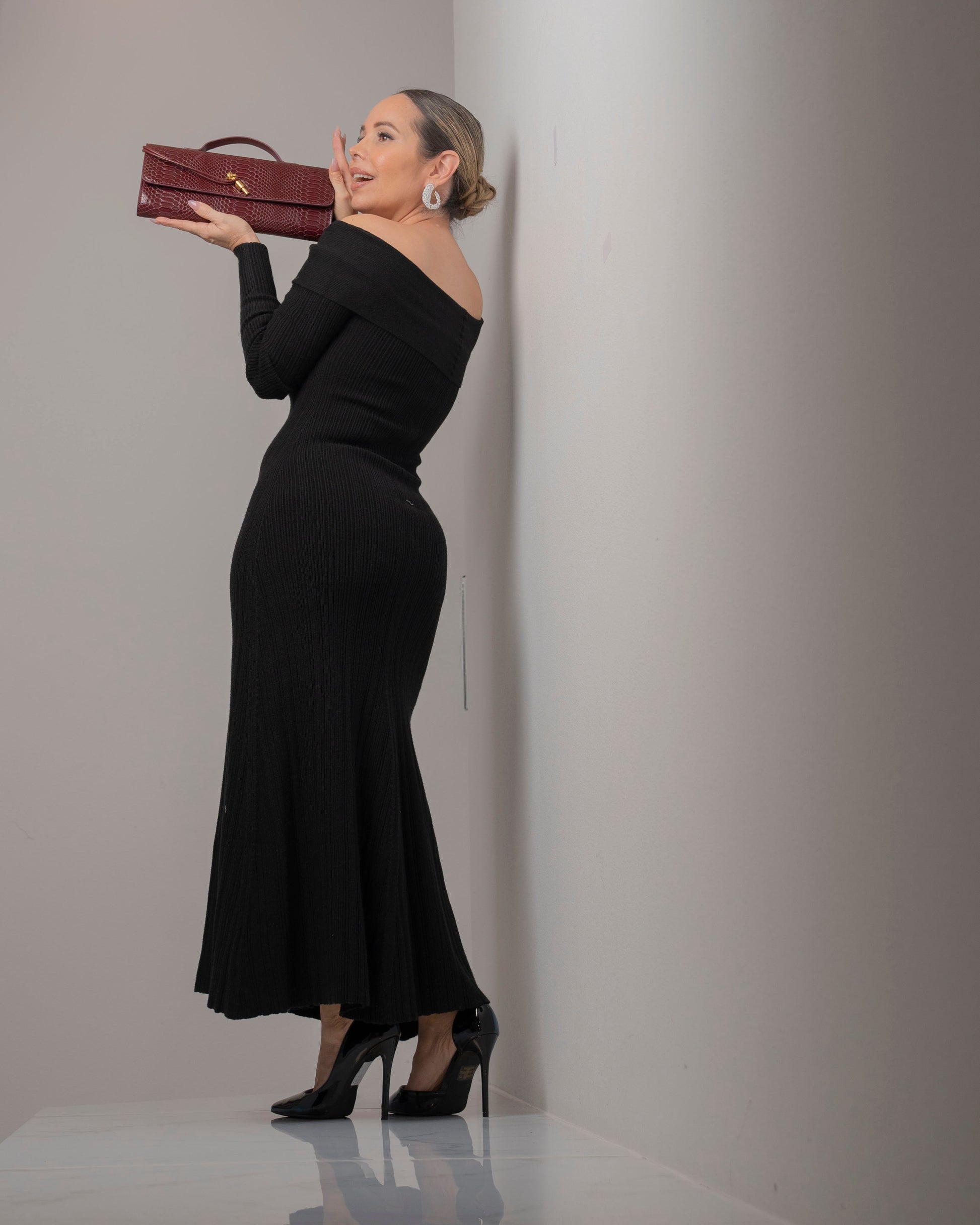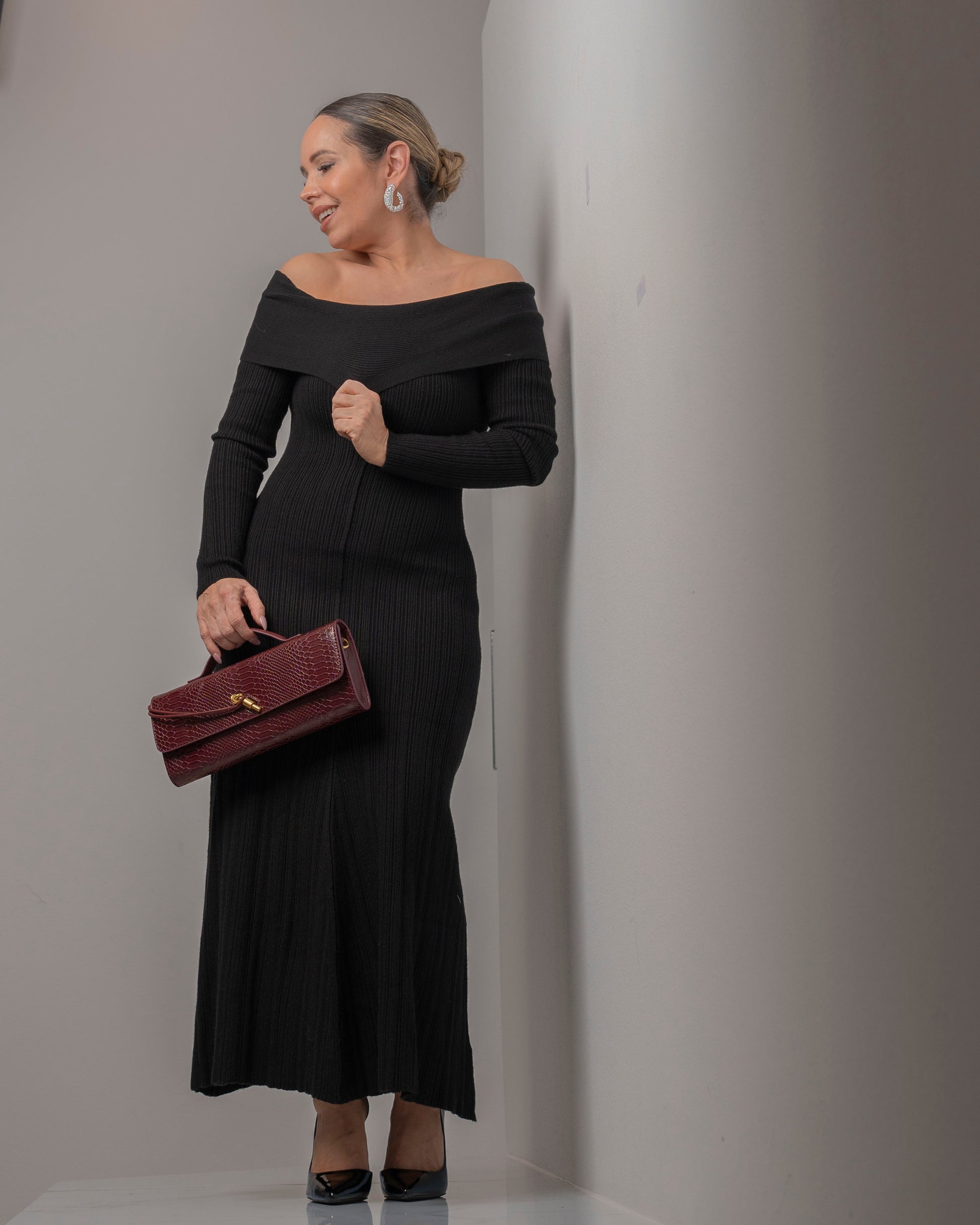 Overfold Off-shoulder Knit Sweater Midi Dress