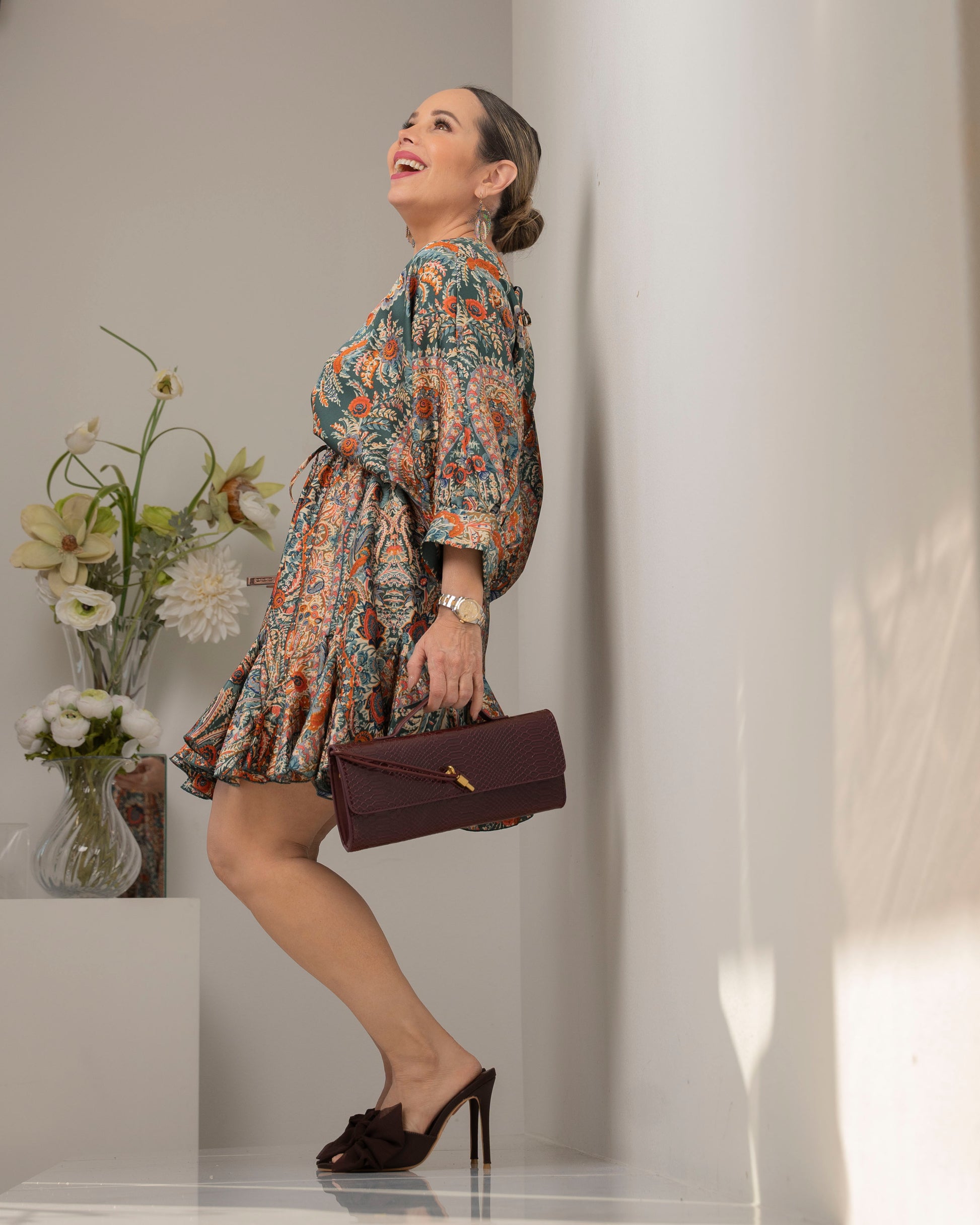 3/4 Dolman Sleeve Tie Front Waisted Mini Dress