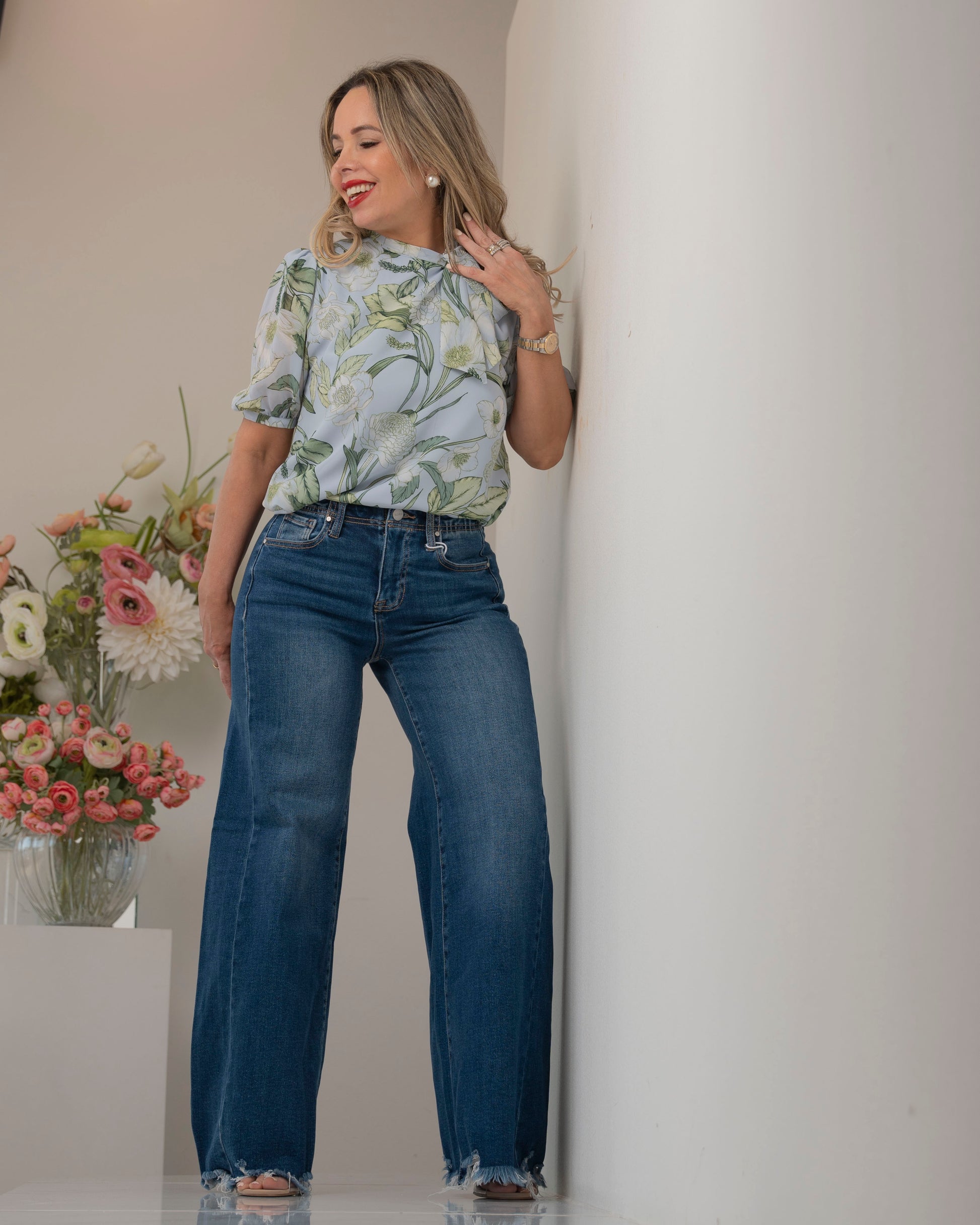 High Rise Ankle Wide Jeans