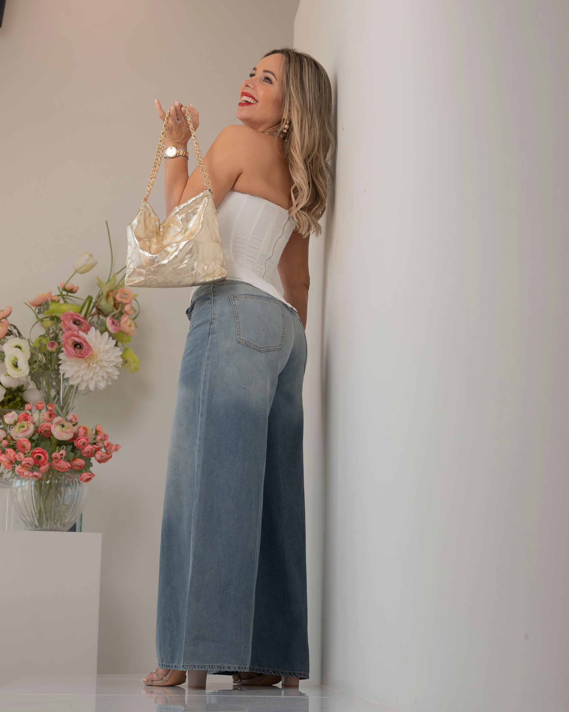 Waist Strap Included Ombre Dyed Wide Denim Pants