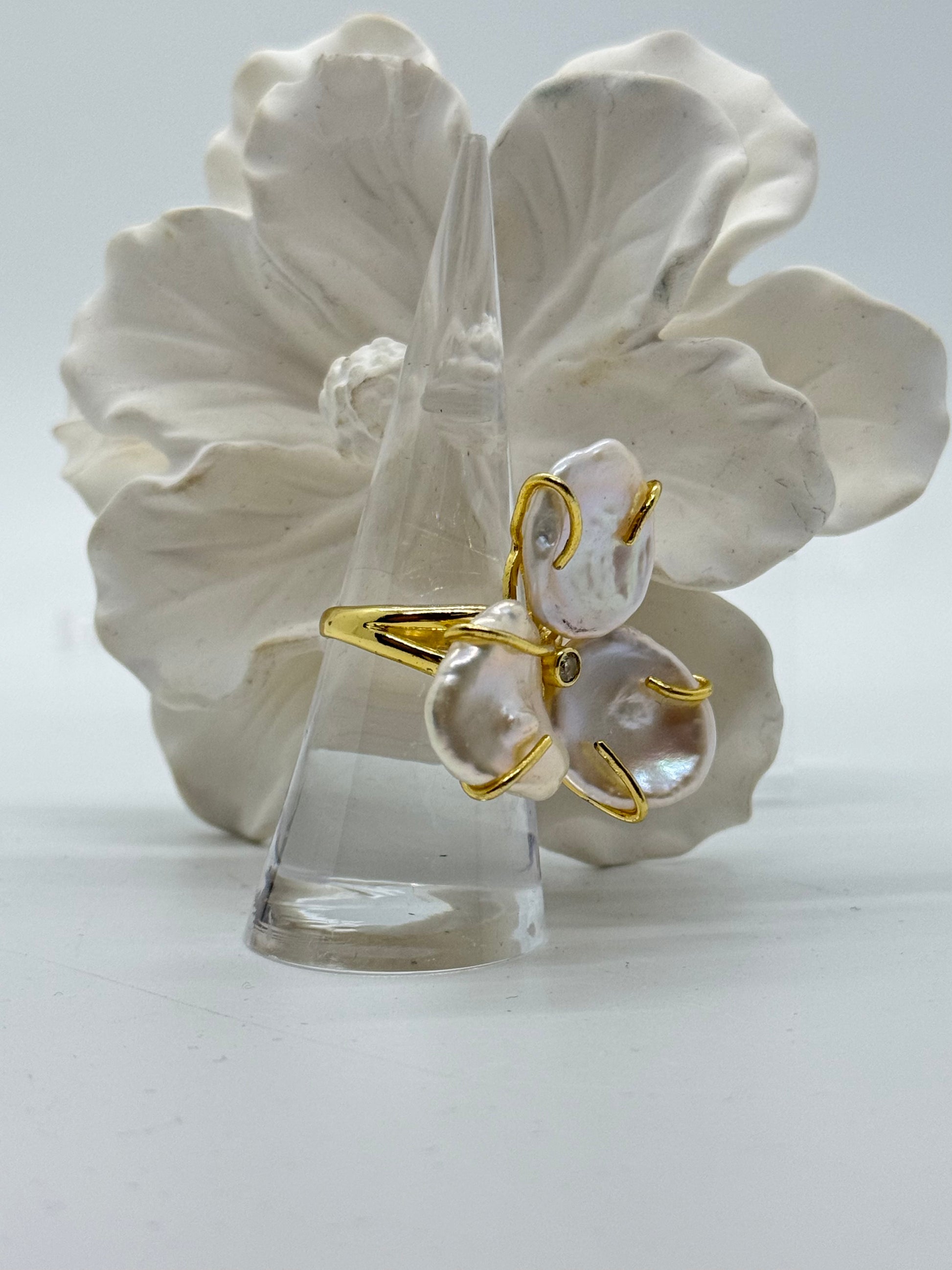 GOLD PLATED 9.25 SILVER WHITE PEARL