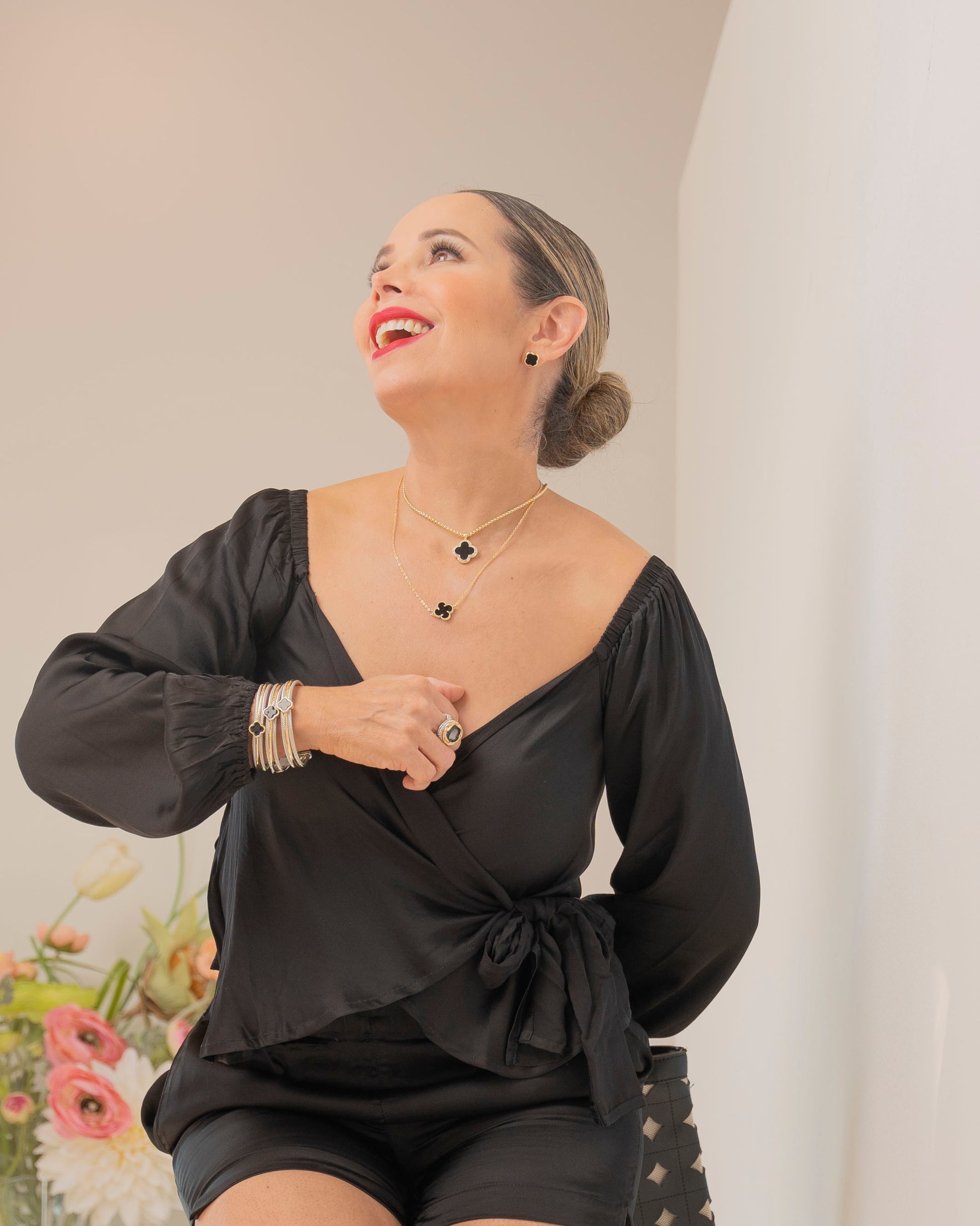 SET. TOP AND SATIN SHORTS FEATURES A SMOCK WAIST BAND POCKET
