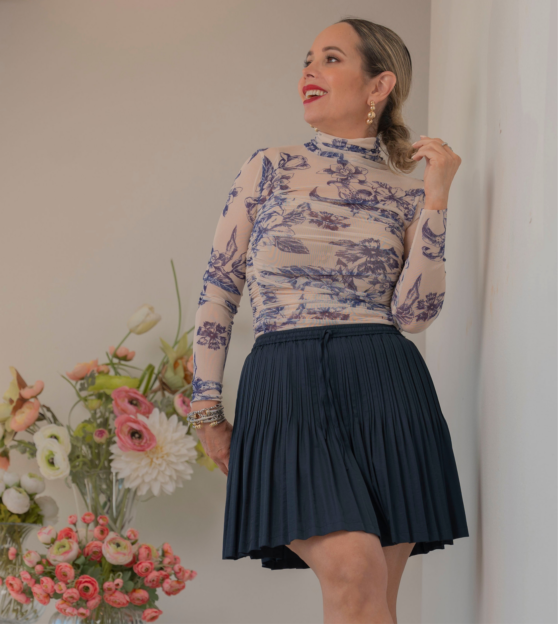 Chic Mock Neck Sheer Floral Mesh Thong Bodysuit