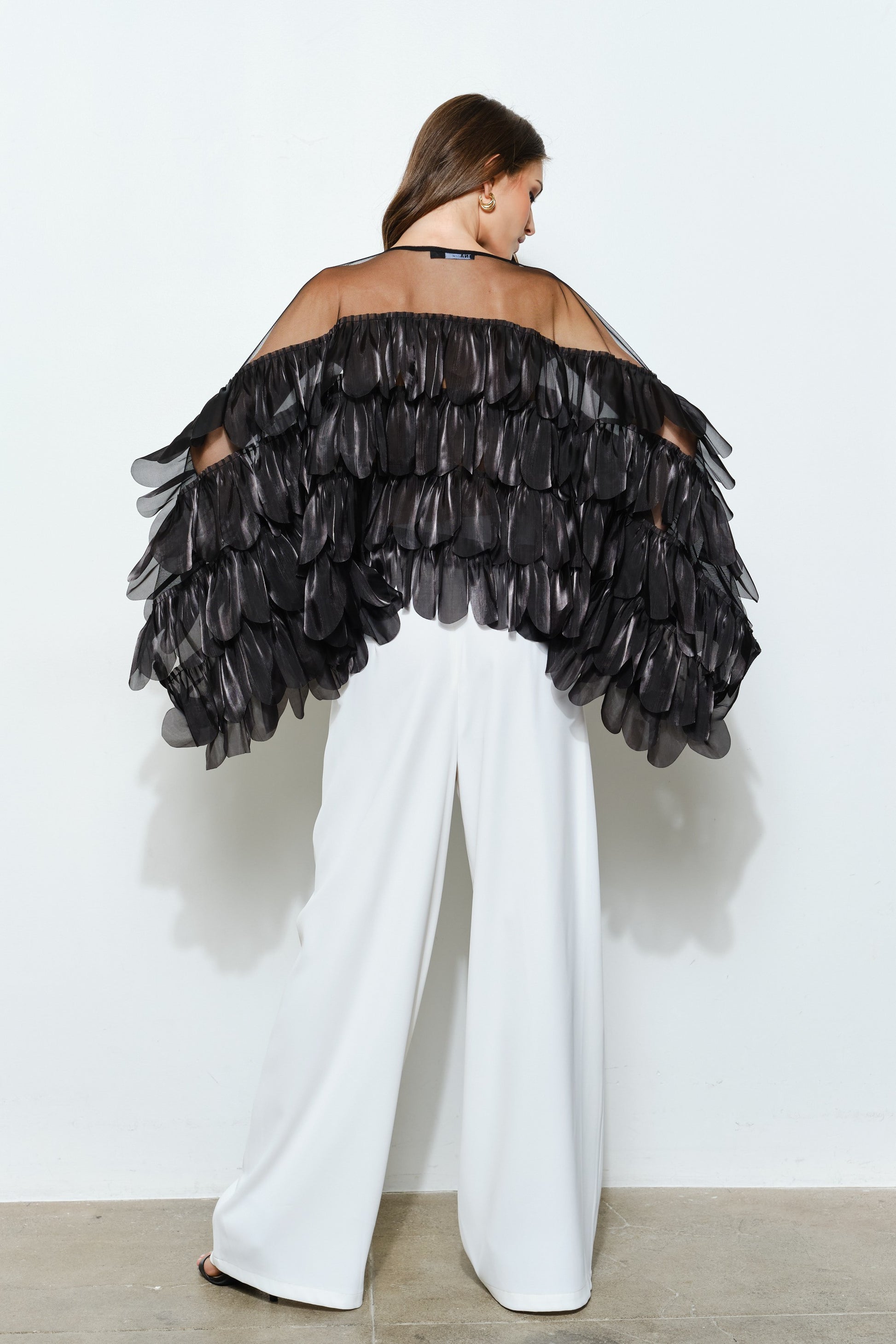 Shimmer Organza Scallop Ruffle Layered Blouse