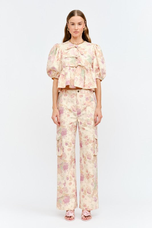 FLORAL PRINT BLOUSE WITH FRONT TIES