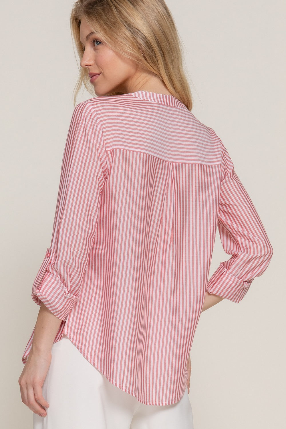 DOWN FRONT POCKET STRIPED WOVEN SHIRT