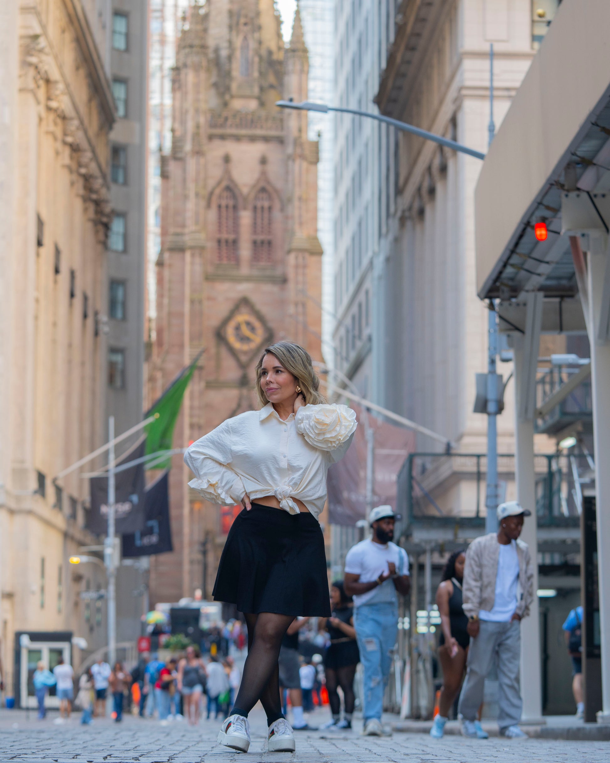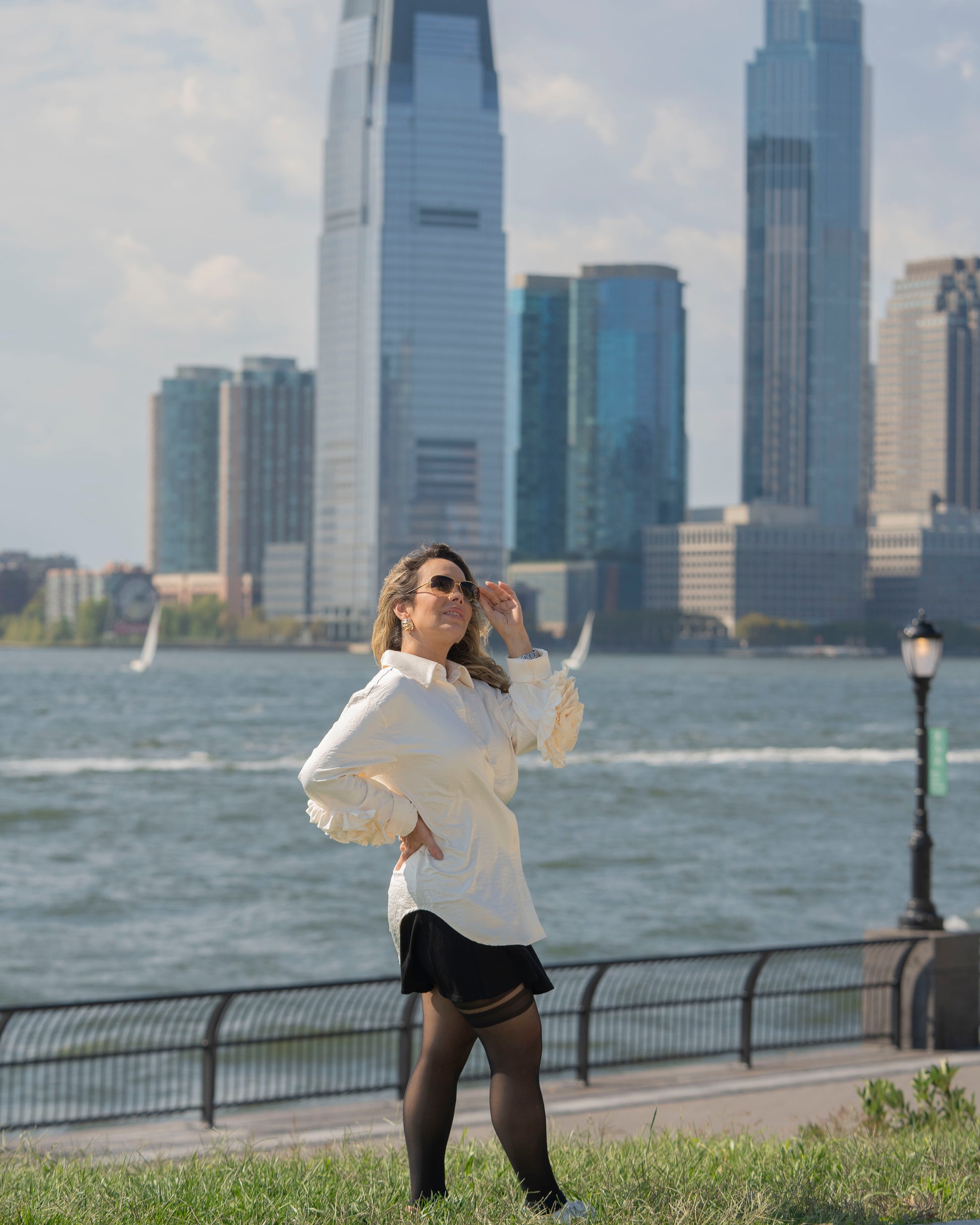 CORSAGE SLEEVES WOVEN BUTTON UP