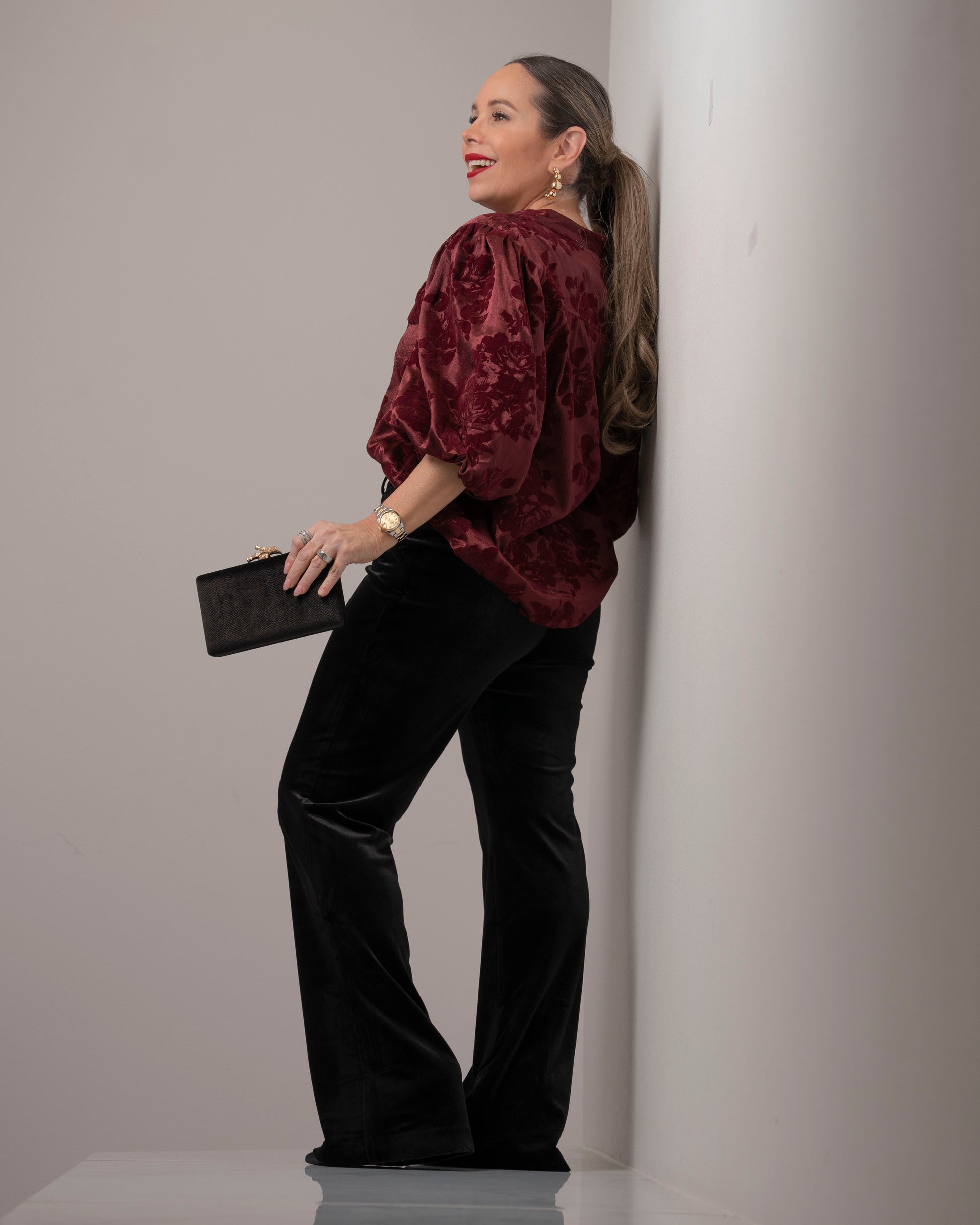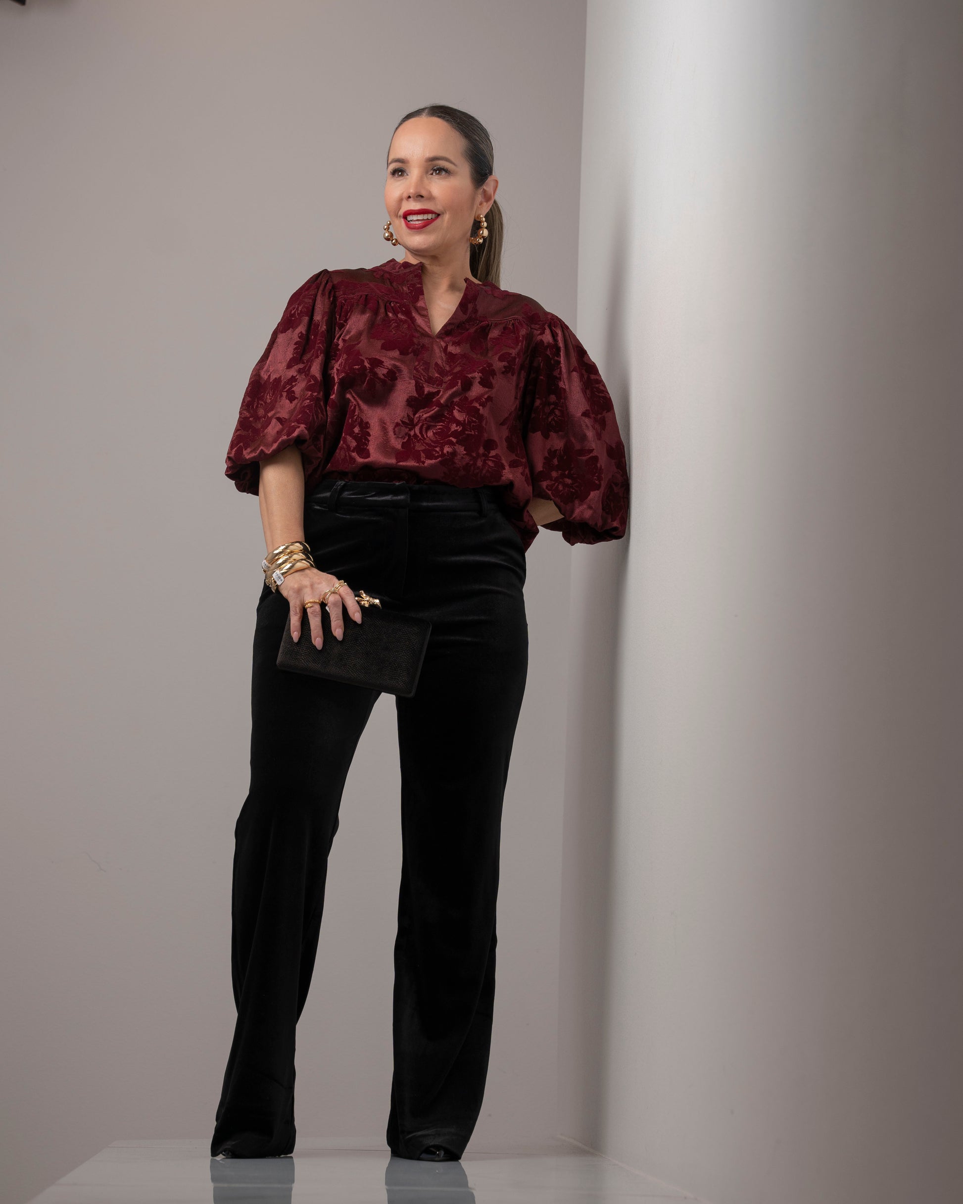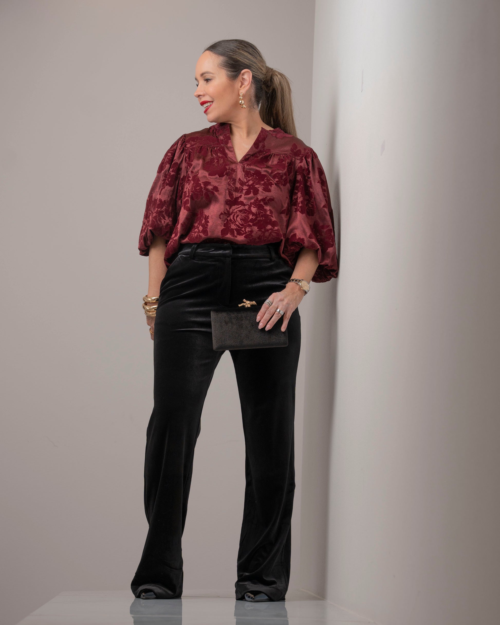 HIGH ROUND NECK PUFF SLEEVE TOP
